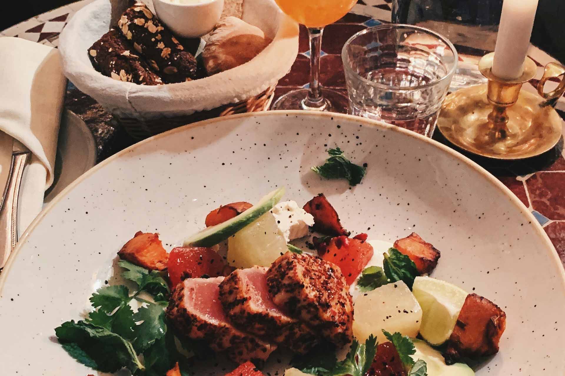 This elegant tart features a savory cream cheese mousse inside a crisp dill-flavored crust, all topped with gleaming slices of smoked salmon.